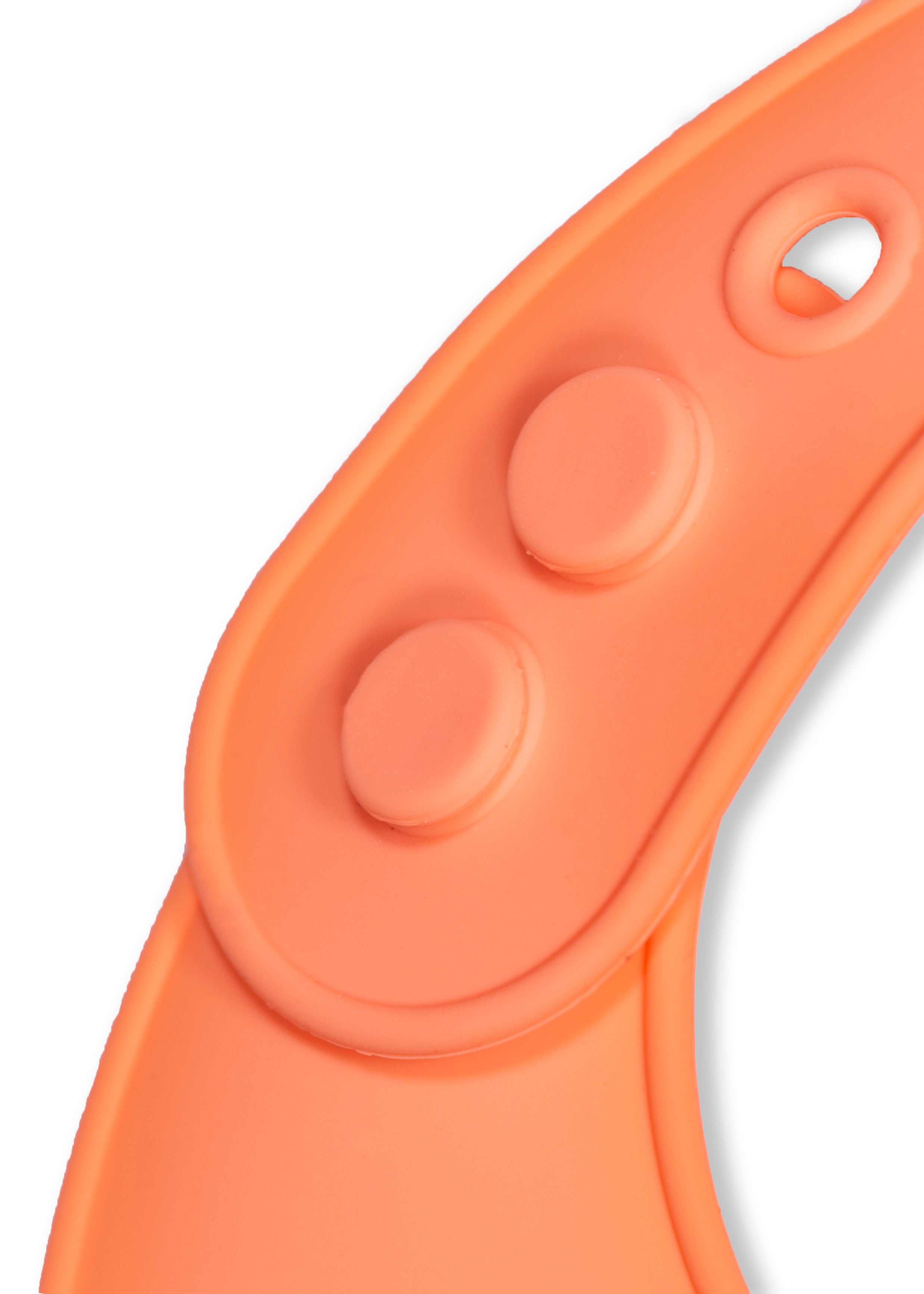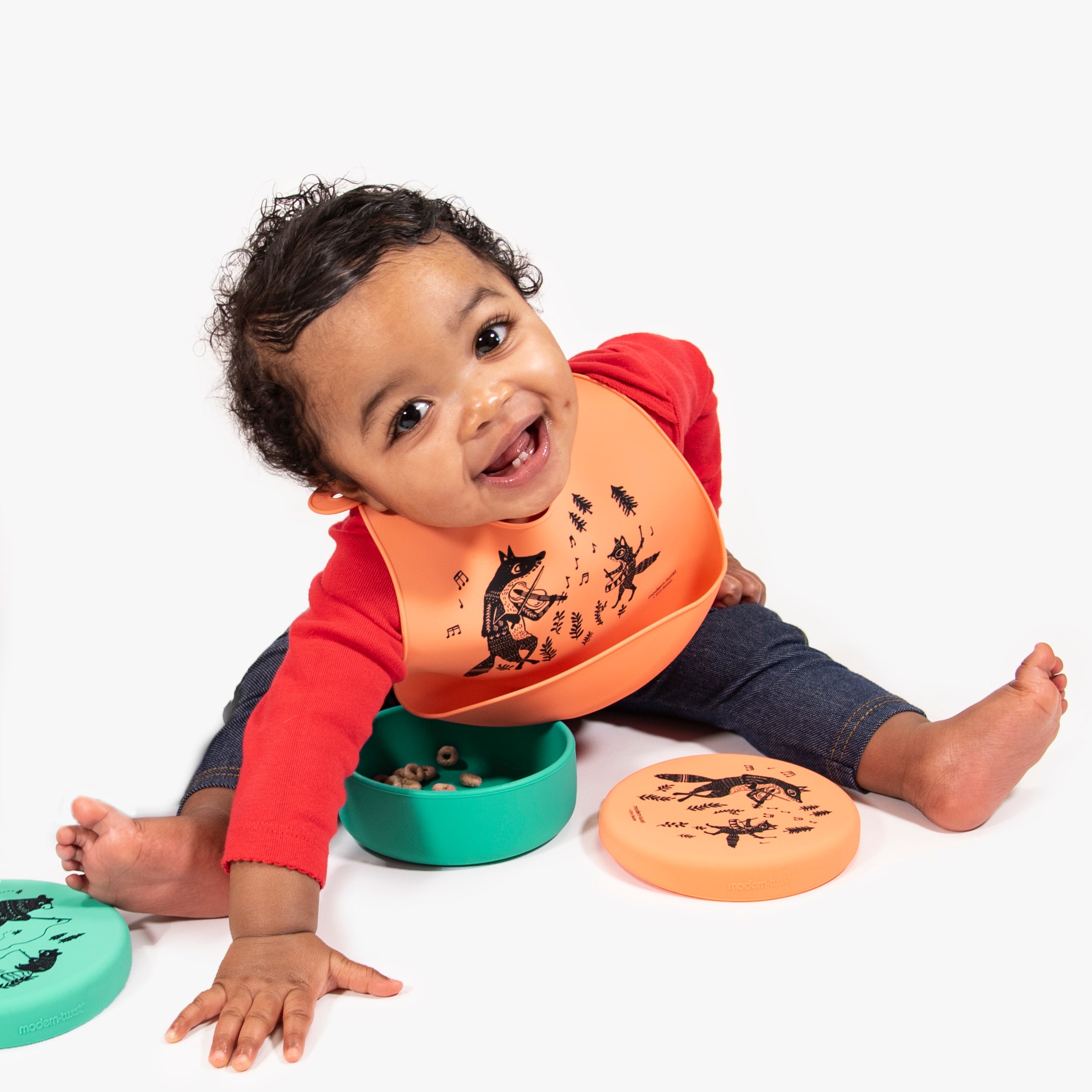 The plastic-free baby bucket-bib is made of pure, silky soft & reusable silicone that keeps your baby’s sensitive skin happy & prevents single-use options from ending up in our oceans & landfills. Reuse over & over knowing that your baby is safe from lead, latex, phthalates, BPAs and other harsh chemicals found in plastic & lower-grade silicone. Roll up the flexible, memory-free bib for on-the-go dining & rescue clothes from endless spills & stains with the non-porous & dishwasher safe material.
