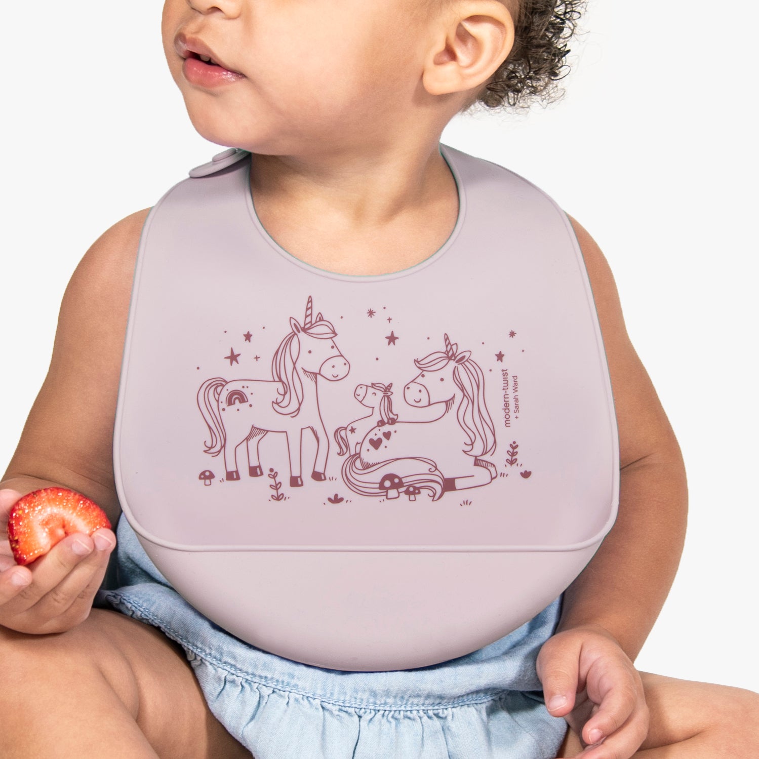 The plastic-free baby bucket-bib is made of pure, silky soft & reusable silicone that keeps your baby’s sensitive skin happy & prevents single-use options from ending up in our oceans & landfills. Reuse over & over knowing that your baby is safe from lead, latex, phthalates, BPAs and other harsh chemicals found in plastic & lower-grade silicone. Roll up the flexible, memory-free bib for on-the-go dining & rescue clothes from endless spills & stains with the non-porous & dishwasher safe material.