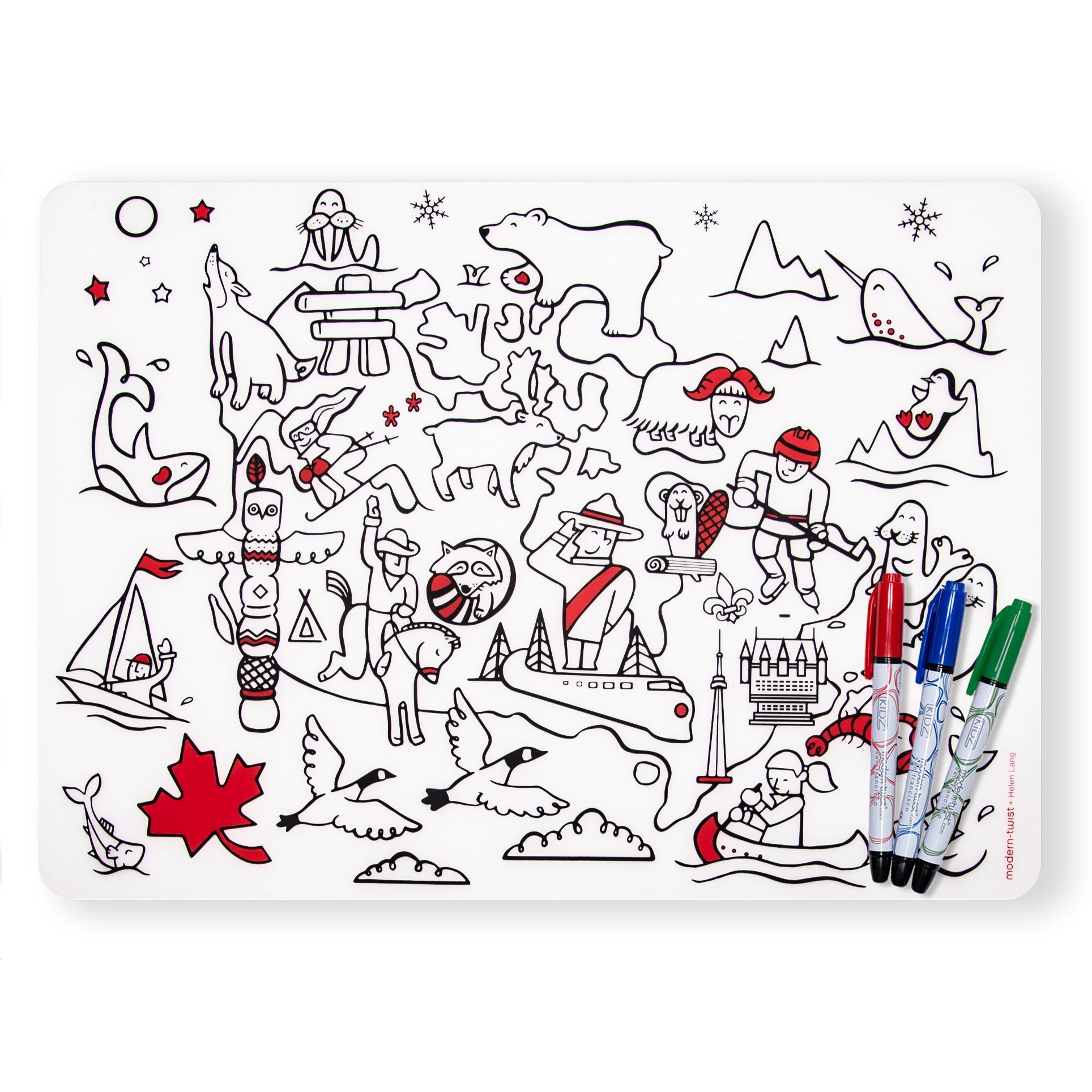 CARE: We’ve kept harsh chemical coatings off of all modern-twist products to keep you healthy & safe. Make sure to clean spills promptly to avoid staining your mark-mat & avoid punctures by keeping it away from sharp objects! Although all of our products are heat resistant to 250 Celsius or 425 Fahrenheit, we do not recommend using them as trivets.