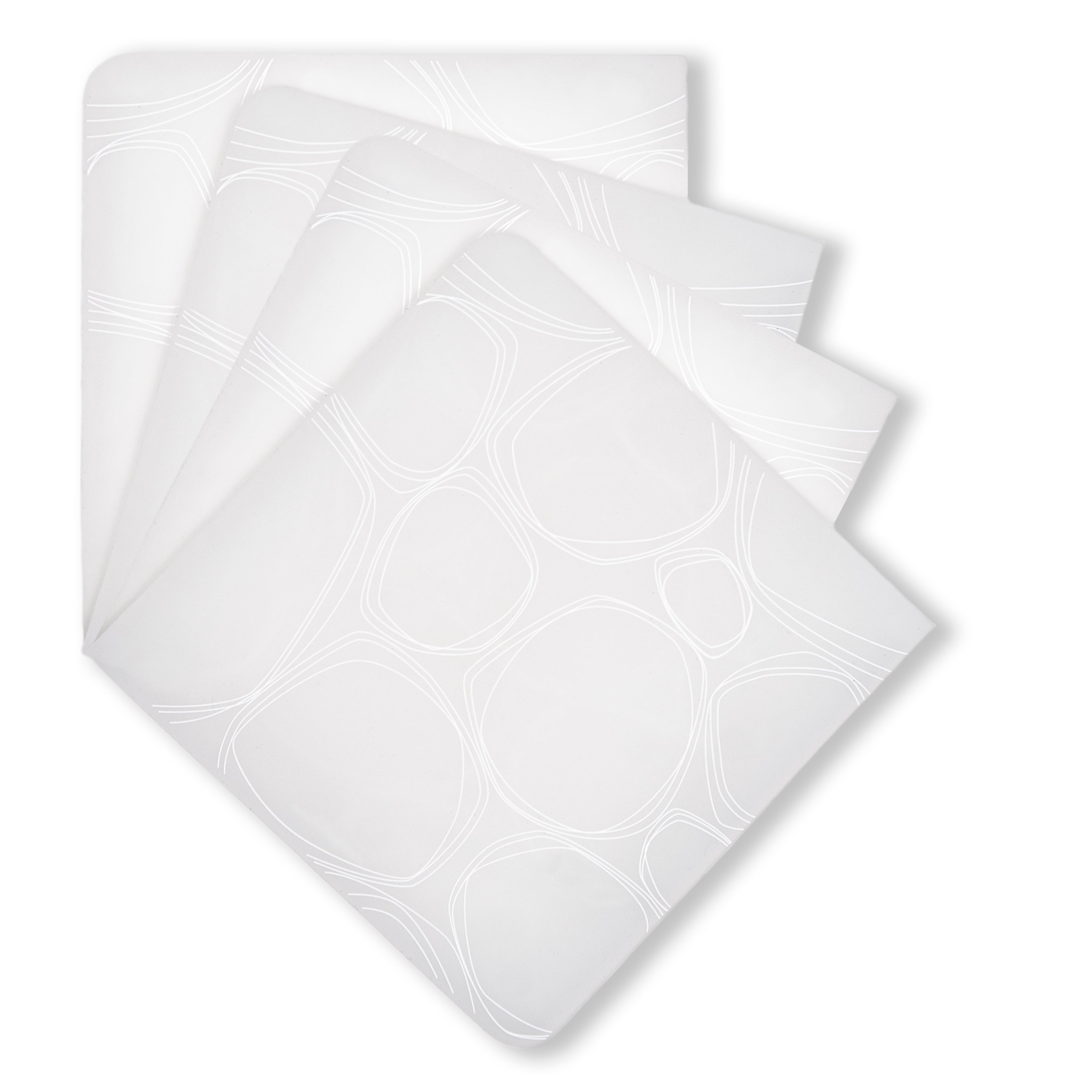Inspired by nature & made with plastic-free silicone, the modern-twist pebbles print coaster set brings functional elegance directly to your table. The soft, beautifully translucent pattern enhances any surface while keeping harsh chemicals far away from your family. This forgiving linen protects your surfaces from heat & water damage with silky soft silicone that never wears or tears. Add a pop of color to the table with personalized coasters, which can be written on over & over with a ball point pen & wiped clean with ease. The non-porous & germ-free material repels the biggest spills, leaving you free to enjoy the subtle designs & rich colors for many years to come.