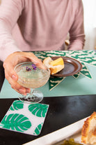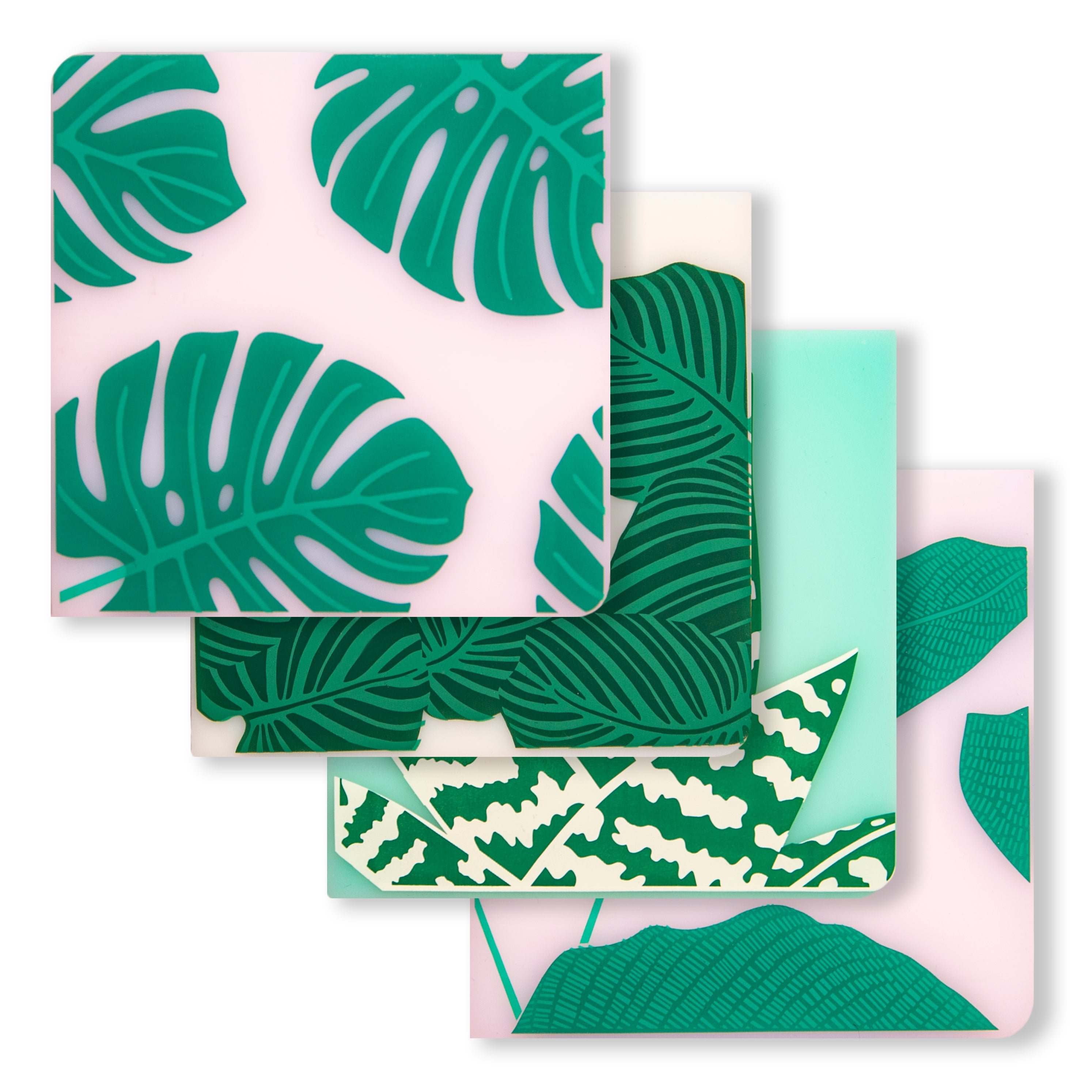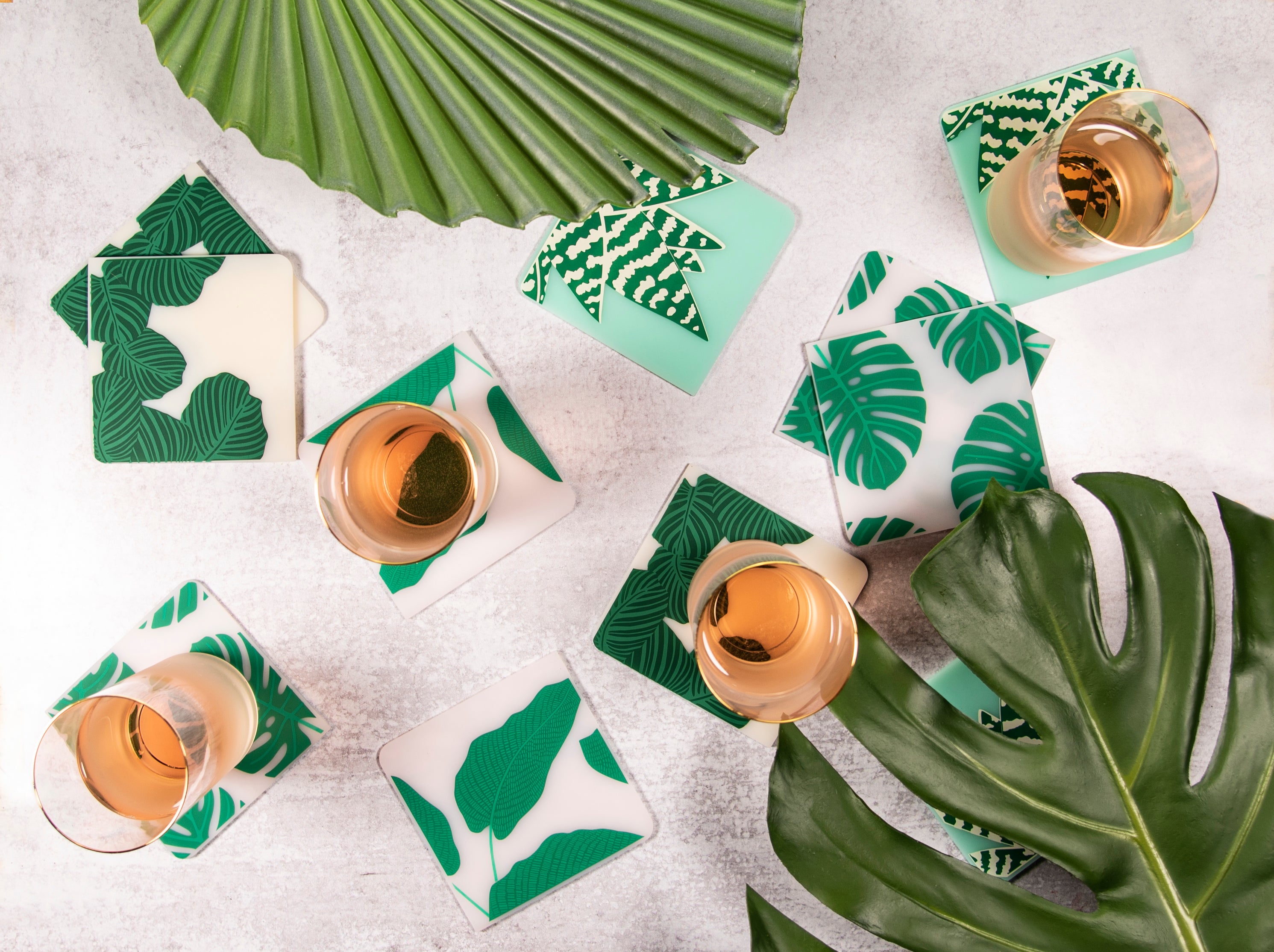 Inspired by nature & made with plastic-free silicone, the modern-twist conservatory coaster set brings functional elegance directly to your table. The soft, beautifully translucent pattern enhances any surface while keeping harsh chemicals far away from your family. This forgiving coaster protects your surfaces from heat & water damage with silky soft silicone that never wears or tears. Add a pop of color to the table with personalized coasters, which can be written on over & over with a ballpoint pen & wiped clean with ease. The non-porous & germ-free material repels the biggest spills, leaving you free to enjoy the subtle designs & rich colors for many years to come.