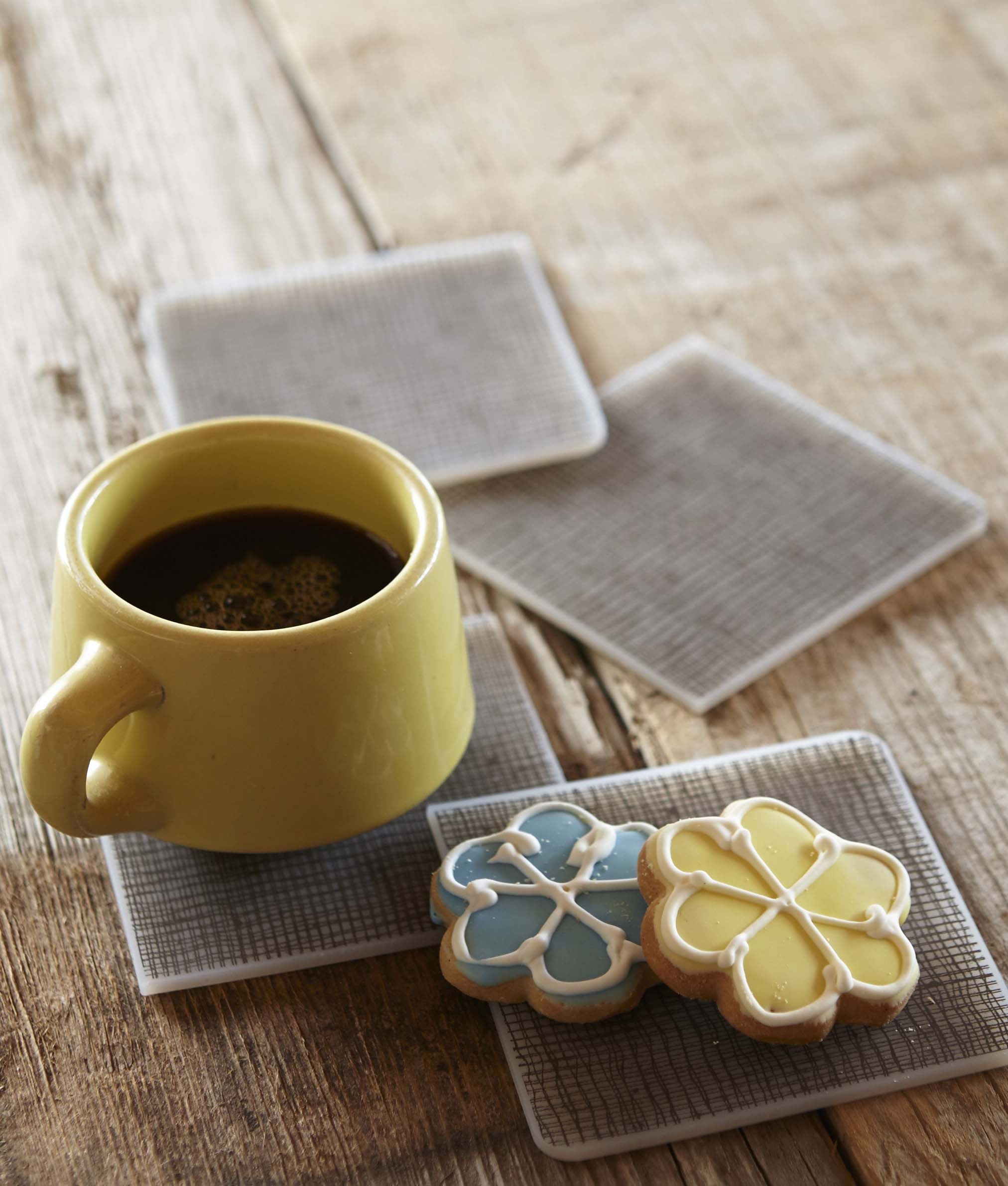 Inspired by nature & made with plastic-free silicone, the modern-twist linen print coaster set brings functional elegance directly to your table. The soft, beautifully translucent pattern enhances any surface while keeping harsh chemicals far away from your family. This forgiving coaster protects your surfaces from heat & water damage with silky soft silicone that never wears or tears. Add a pop of color to the table with personalized coasters, which can be written on over & over with a ballpoint pen & wiped clean with ease. The non-porous & germ-free material repels the biggest spills, leaving you free to enjoy the subtle designs & rich colors for many years to come.