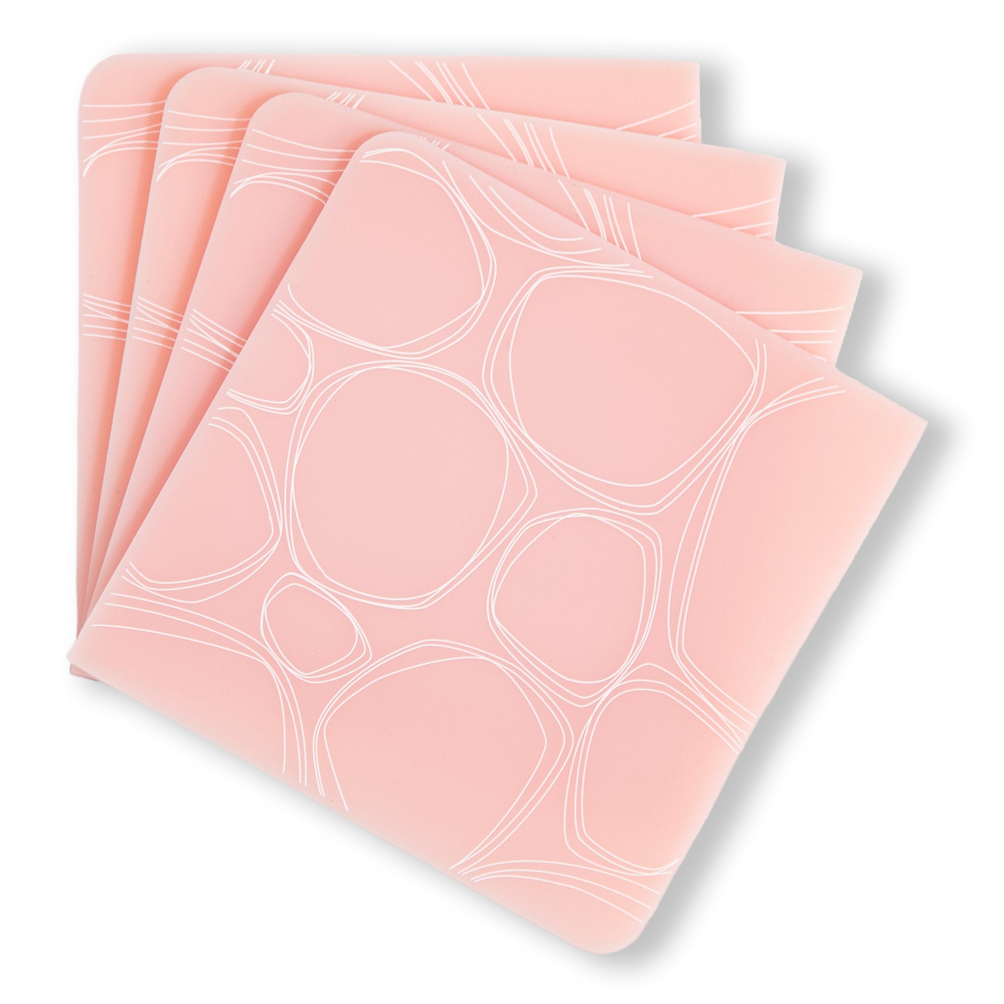 Inspired by nature & made with plastic-free silicone, the modern-twist pebbles print coaster set brings functional elegance directly to your table. The soft, beautifully translucent pattern enhances any surface while keeping harsh chemicals far away from your family. This forgiving linen protects your surfaces from heat & water damage with silky soft silicone that never wears or tears. Add a pop of color to the table with personalized coasters, which can be written on over & over with a ball point pen & wiped clean with ease. The non-porous & germ-free material repels the biggest spills, leaving you free to enjoy the subtle designs & rich colors for many years to come.