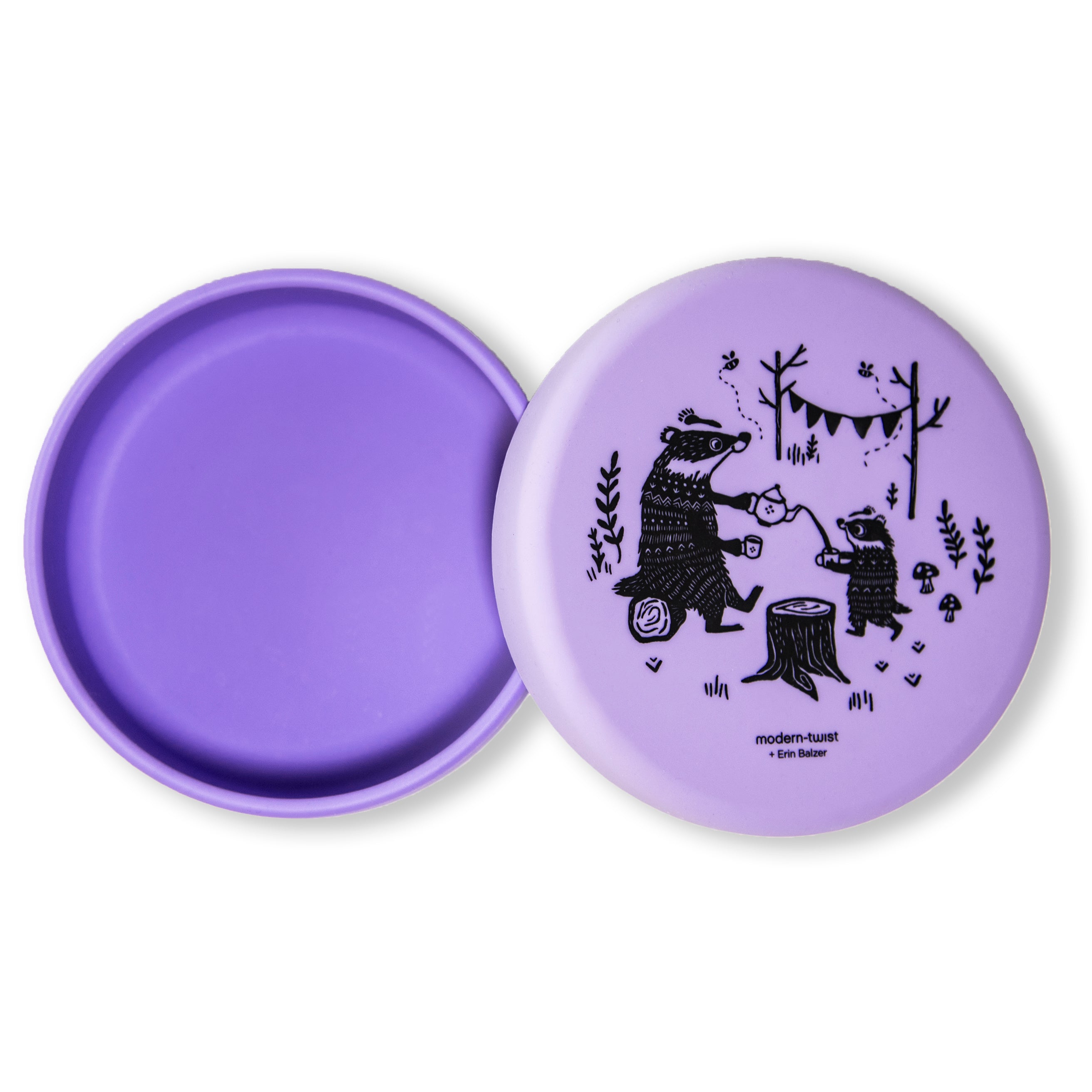 Our new mealtime mix and match collection is both fun and functional. Adorable graphics by Erin Balzer, soft to the touch, mix and match the forest family collection. Meal sets come with a food bowl and lid that doubles as a plate. The plastic-free meal set is perfect for little hands!