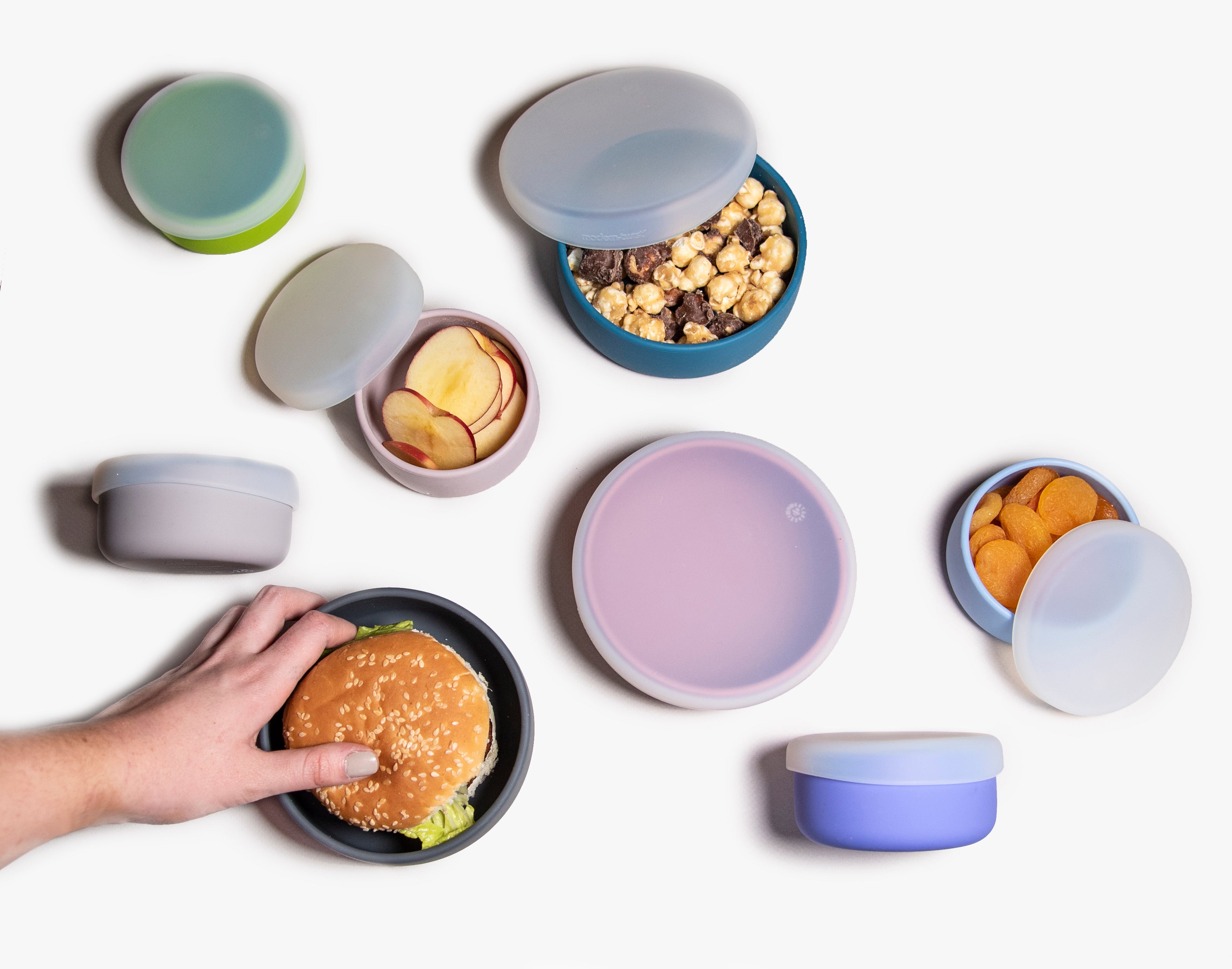 The plastic-free snack set is perfect for little hands! Made with 100% pure food-grade silicone that is European & FDA compliant. Dishwasher, microwave & freezer safe.
