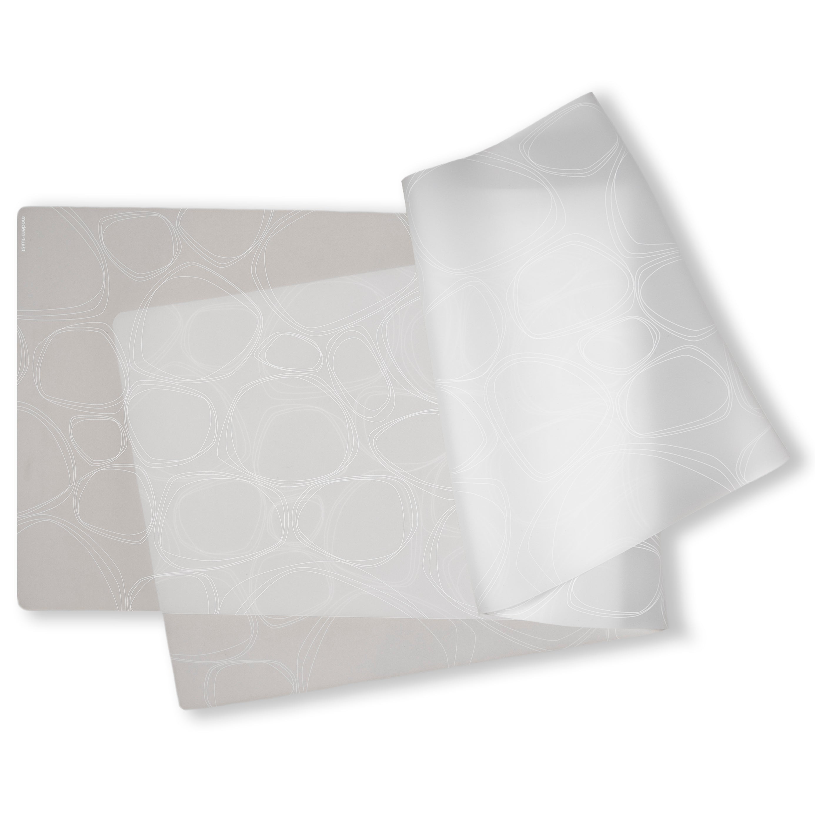 Made from plastic-free silicone & hand silk-screened with graceful designs, the modern-twist pebbles print table-runner delivers eco-friendly, elegant style to your home. Bring natural beauty to your table with this soft, beautifully translucent pattern that enhances any surface while keeping lead, latex, phthalates, BPAs, & other harsh chemicals far away from your dinner. This forgiving table-runner protects your surfaces from heat & water damage with silky soft, memory-free silicone that never wears or tears. The non-porous & germ-free material repels the biggest spills & wipes clean with ease, leaving you free to enjoy the subtle designs & rich colors for many years to come.