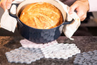 CARE: We’ve kept harsh chemical coatings off of all modern-twist products to keep you healthy & safe. Make sure to clean spills promptly to avoid staining your trivets & avoid punctures by keeping it away from sharp objects! Trivets are heat resistant to 329 Celsius or 675 Fahrenheit.