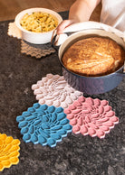 CARE: We’ve kept harsh chemical coatings off of all modern-twist products to keep you healthy & safe. Make sure to clean spills promptly to avoid staining your trivets & avoid punctures by keeping it away from sharp objects! Trivets are heat resistant to 329 Celsius or 675 Fahrenheit.