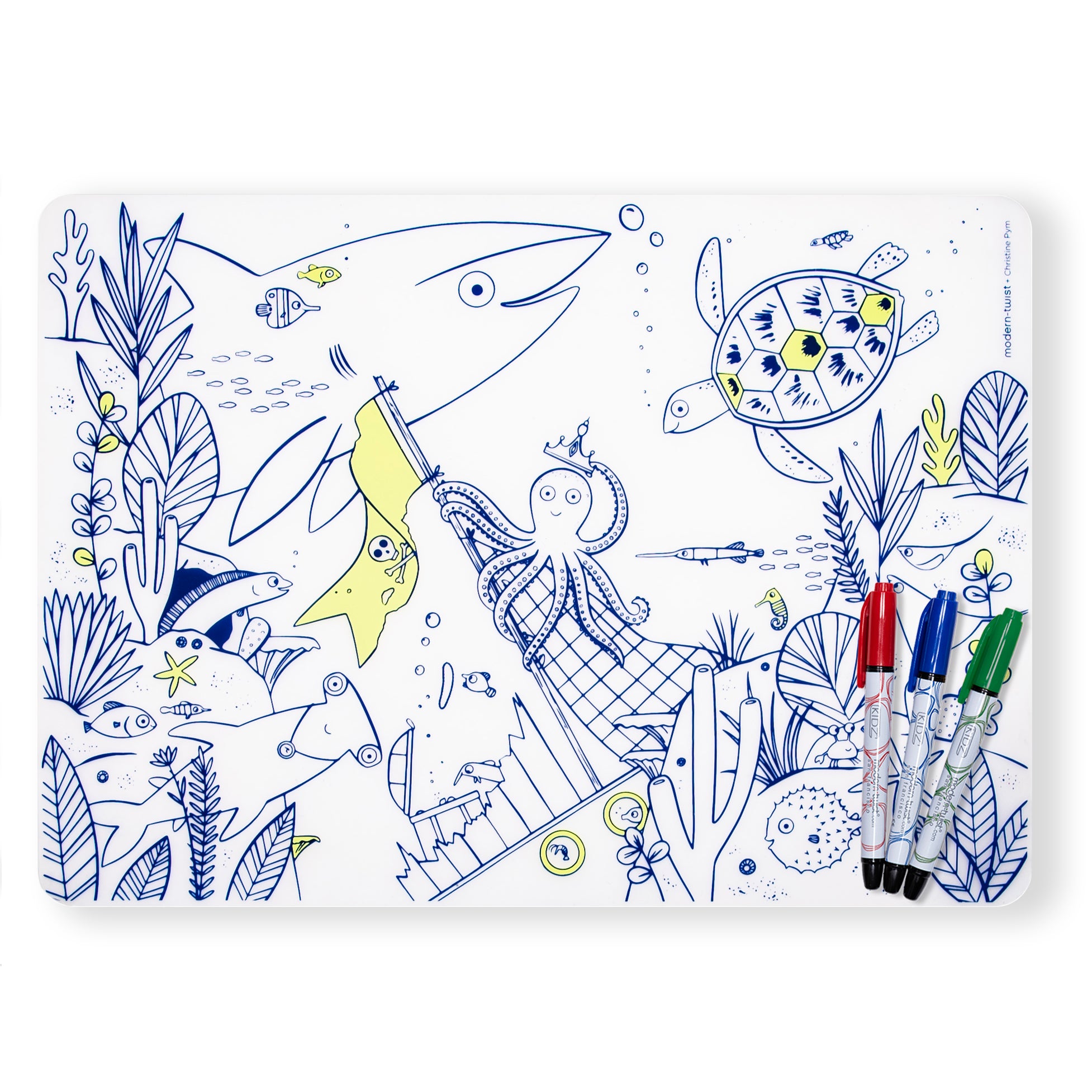 The plastic-free mark-mat is crafted out of pure, silky soft silicone & designed for kids of all ages. Young Picassos will love the playful designs & enchanting characters that adorn our mats, from a whimsical day of Fun on the Golden Gate to wild adventures with our fearless Space Animals. The non-porous & germ-free surface will never wear & tear, so you can roll up the reusable, memory-free mat again & again for endless mealtime fun at home or on the go. Keep the harsh chemicals found in plastics & lower-grade silicones away from your family & out of our landfills with the easy to clean, playful mark-mat series.