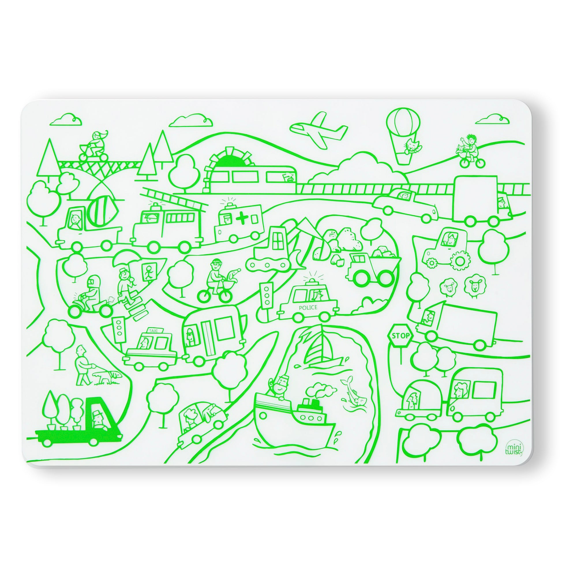 The plastic-free mark-mat is crafted out of pure, silky soft silicone & designed for kids of all ages. Young Picassos will love the playful designs & enchanting characters that adorn our mats, from a whimsical day of Fun on the Golden Gate to wild adventures with our fearless Space Animals. The non-porous & germ-free surface will never wear & tear, so you can roll up the reusable, memory-free mat again & again for endless mealtime fun at home or on the go. Keep the harsh chemicals found in plastics & lower-grade silicones away from your family & out of our landfills with the easy to clean, playful mark-mat series.