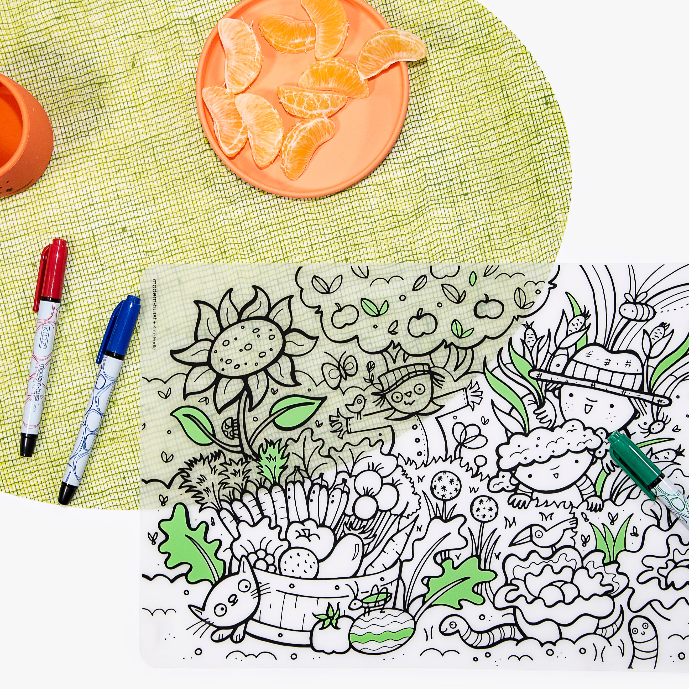 CARE: We’ve kept harsh chemical coatings off of all modern-twist products to keep you healthy & safe. Make sure to clean spills promptly to avoid staining your mark-mat & avoid punctures by keeping it away from sharp objects! Although all of our products are heat resistant to 250 Celsius or 425 Fahrenheit, we do not recommend using them as trivets.