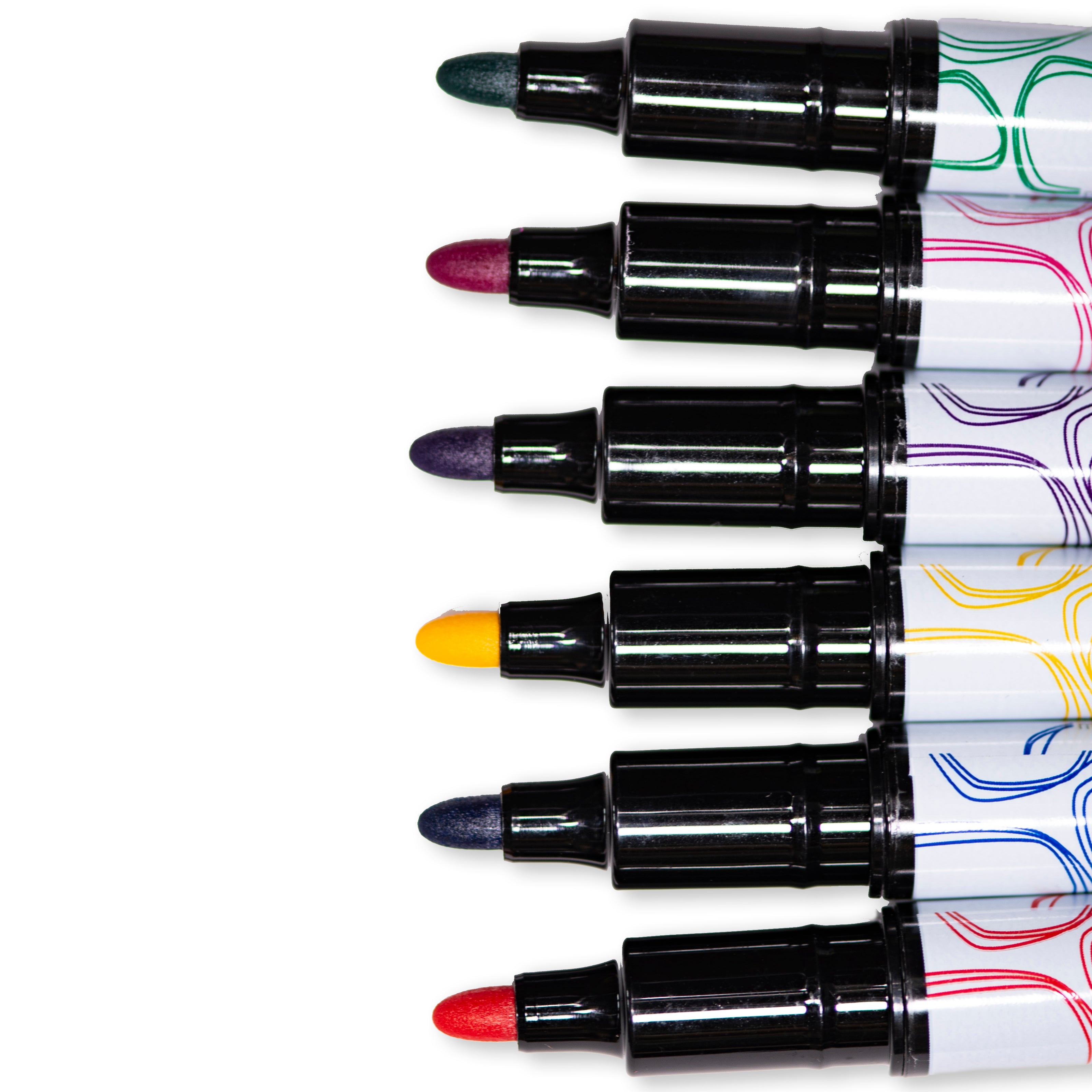 Made with 70% recycled materials, our non-toxic dry-erase markers are perfect for doodling away at meal times or on-the-go. Wipe clean again & again for endless entertainment!