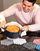 Designed in collaboration with Nervous System our plastic-free silicone delivers eco-friendly elegant style to your home. Our trivets protect your surfaces from heat damage by pots and pans with silky soft, memory-free silicone that never wears or tears. Designed to connect together to form any sized protective surface that you need. They also make a great table runner or centerpiece. Bring functional elegance to your kitchen keeping lead, latex, phthalates, BPAs, & other harsh chemicals far away from your dinner. The non-porous & germ-free material repels the biggest spills & wipes clean with ease, leaving you free to enjoy the subtle designs & rich colors for many years to come.